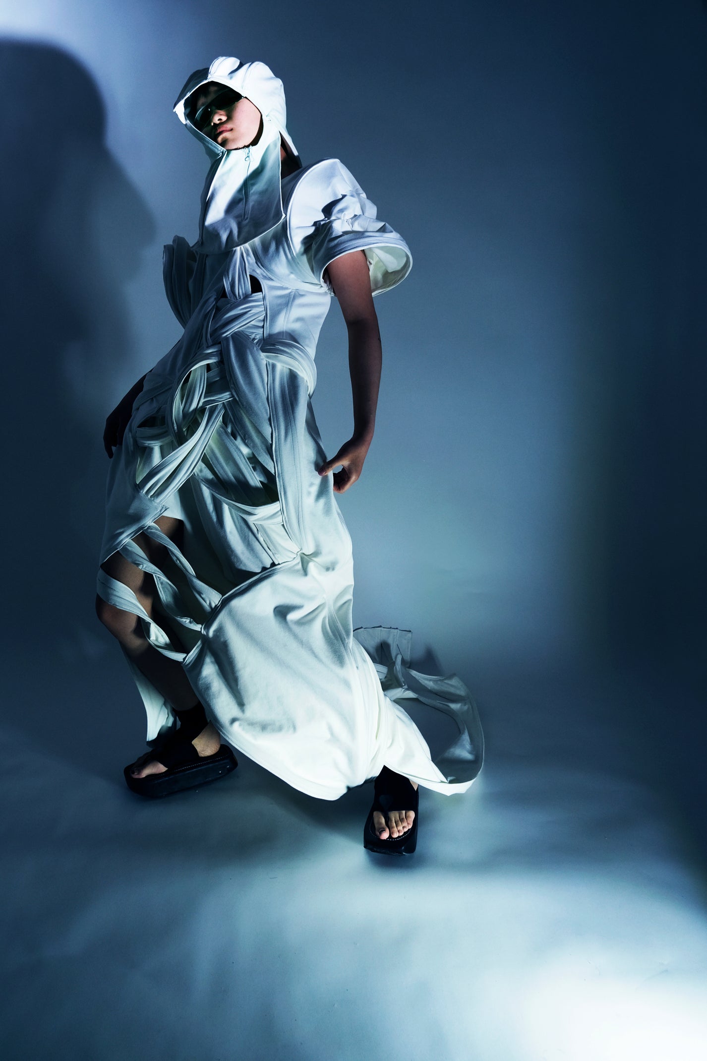 Celestial Bloom Draped Knit-Satin Dress + Matching Scarf